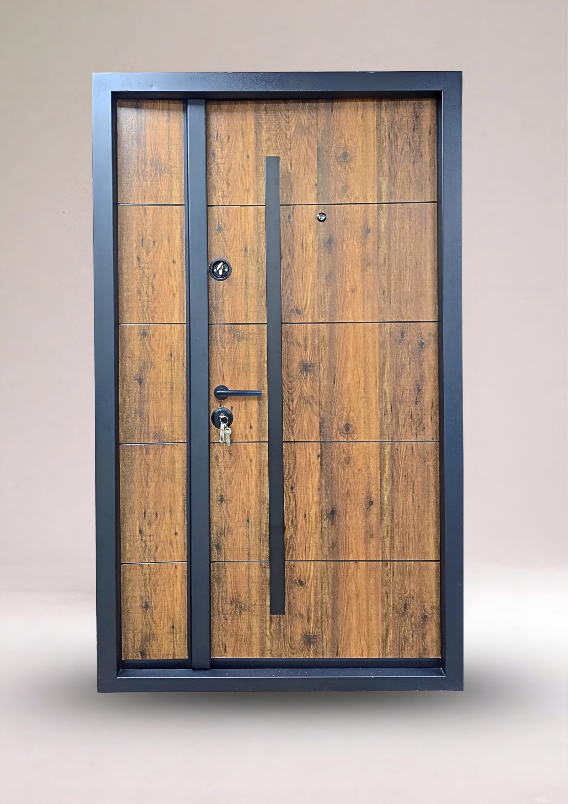 Premium sigurnosna vrata Woods, sa oblogom od compact-a predstavljaju jedno od najmodernijih i kvalitetnijih rešenja za ulazna vrata za kuću, odnosno vrata otporna na spoljne uticaje. Vrata su teška preko 70kg i imaju ispunu u vidu kamene vune.